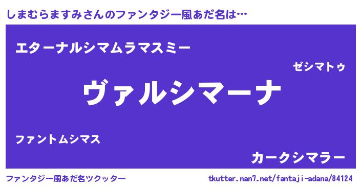 | 意味不明あだ名 | 『住所不定無職しまむらますみ(56歳)』 |