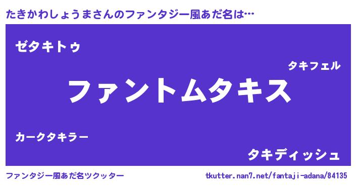 | 男性向けラノベタイトル風あだ名 | 『たきかわしょうまに滅ぼされるだけの簡単なお仕事です』 |