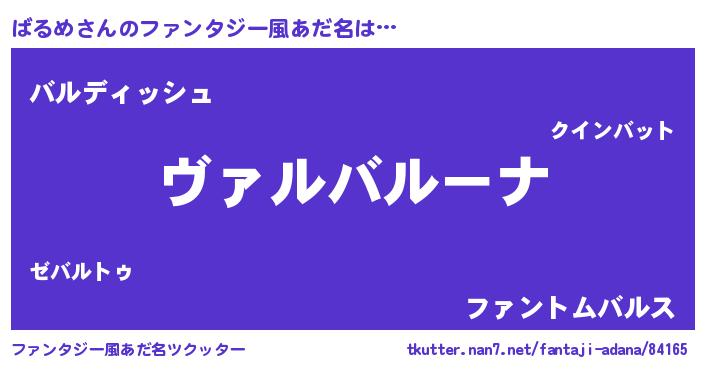 | 男性向けラノベタイトル風あだ名 | 『この素晴らしい世界にばるめを!』 |