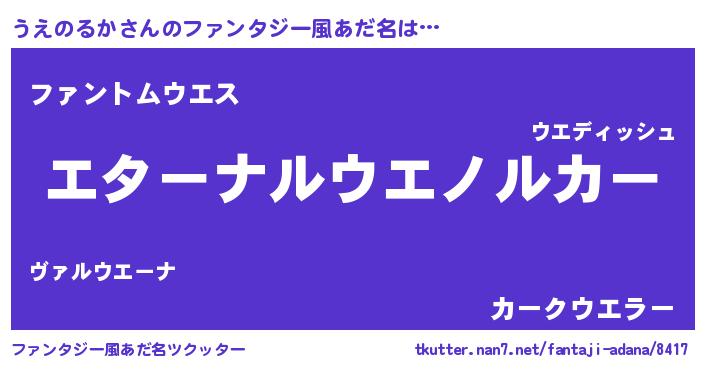 | 意味不明あだ名 | 『うえのるかフォーエバー』 |