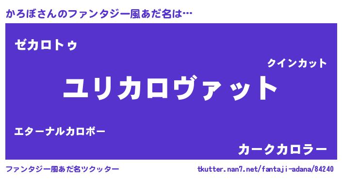 | 男性向けラノベタイトル風あだ名 | 『かろぼ~年齢イコール彼女いない歴の魔法使い~』 |