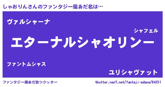 | 女子向けラノベタイトル風あだ名 | 『しゃおりんの雑貨屋さん』 |