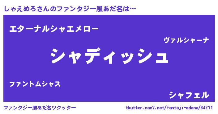 | 意味不明あだ名 | 『永久保存しゃえめろ』 |