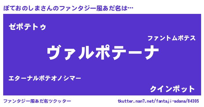 | ヒーロー風カッコイイあだ名 | 『仮面ポテダー』『愛の使者ぽておのしま』 |