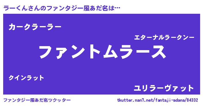 | 女子向けラノベタイトル風あだ名 | 『ラーくん様がみてる』 |