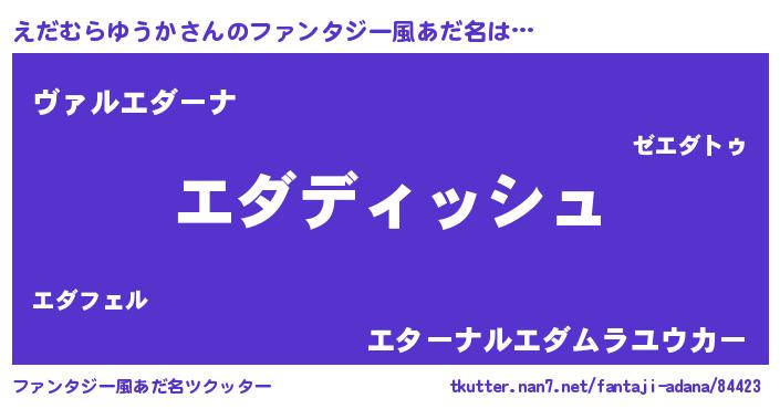 | ヒーロー風カッコイイあだ名 | 『ネオエダムラユウカ』『仮面エダダー』 |