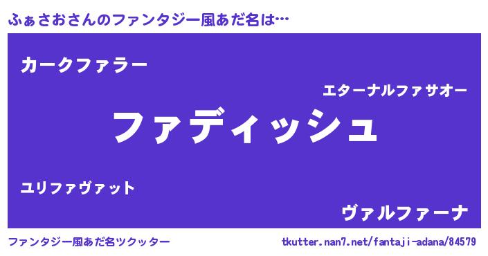 | 女子向けラノベタイトル風あだ名 | 『ふぁさおの契約王妃』 |