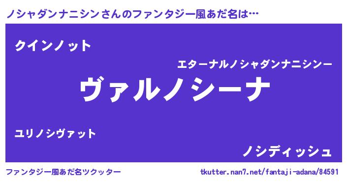 | 意味不明あだ名 | 『住所不定無職ノシャダンナニシン(47歳)』 |