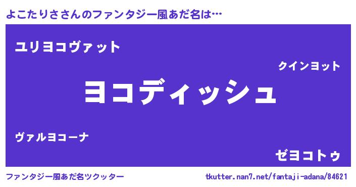 | 意味不明あだ名 | 『永久保存よこたりさ』『自称よこたりさ』 |