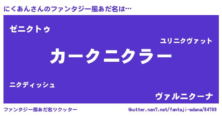 | 意味不明あだ名 | 『自称にくあん』『エリンギ科にくあん属』 |