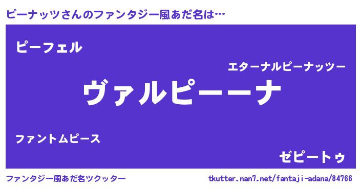 | 女子向けラノベタイトル風あだ名 | 『乙女ゲームの破滅フラグしかない悪役ピーナッツに転生してしまった…』 |