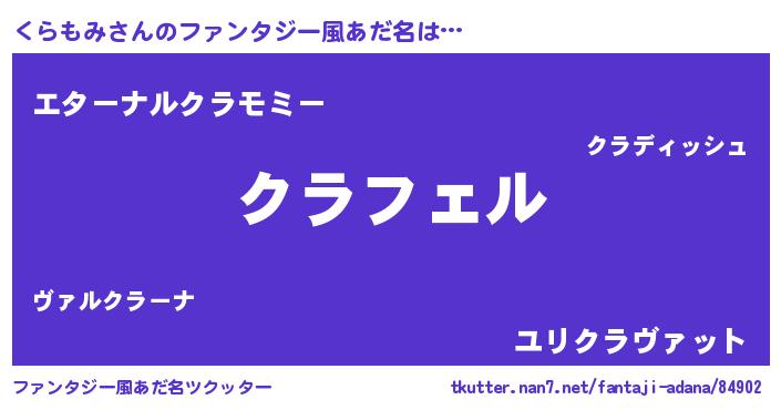 | 意味不明あだ名 | 『ペロリンくらもみ』『永久保存くらもみ』 |