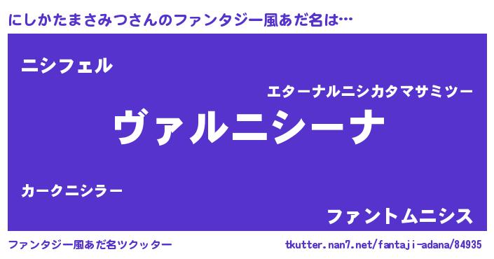 | 意味不明あだ名 | 『住所不定無職にしかたまさみつ(59歳)』 |