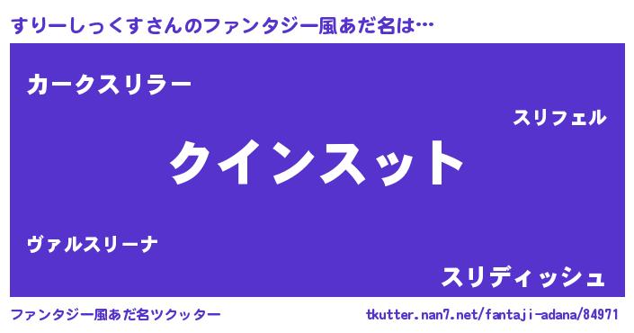 | ヘコむあだ名 | 『すりーしっくす(遠い目)』『すりもー』 |