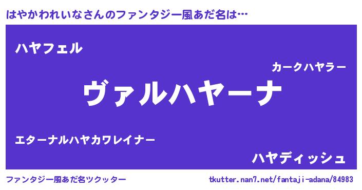はやかわれいなさんのファンタジー風あだ名をツクッター!
