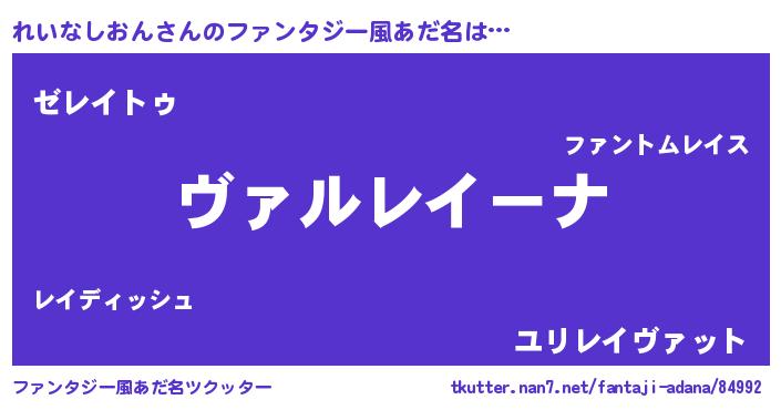 | 男性向けラノベタイトル風あだ名 | 『魔弾の王とれいなしおん』 |