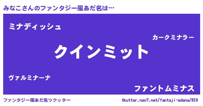 | 自動車の名前っぽいあだ名 | 『ミンR』『ヴィッミ』『ミント』 |