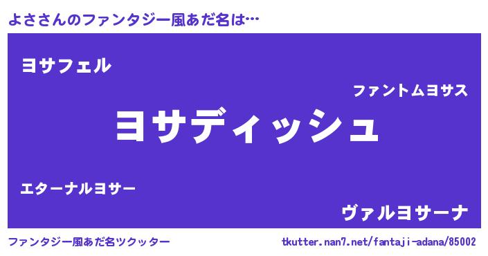 | ポケモン風あだ名 | 『ゼニヨサ』『ヨサチュウ』『ヒヨサ』 |