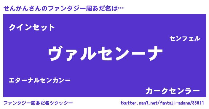 | 男性向けラノベタイトル風あだ名 | 『魔弾の王とせんかん』 |