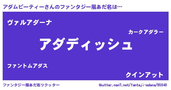 | 男性向けラノベタイトル風あだ名 | 『アダムピーティーという概念が存在しない退屈な世界 』 |