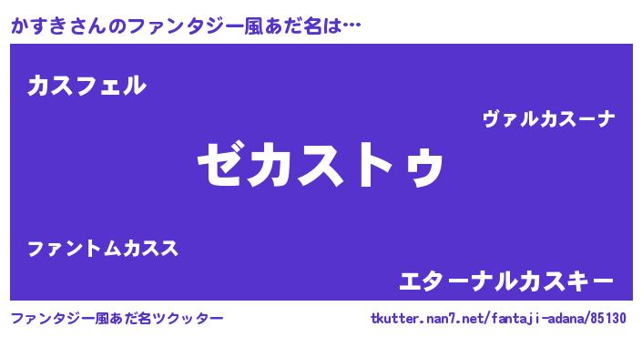 | 男性向けラノベタイトル風あだ名 | 『Re:かすきから始める異世界生活』 |