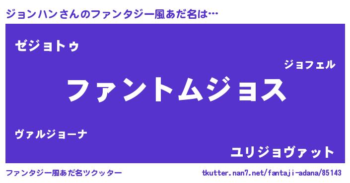 | 女子向けラノベタイトル風あだ名 | 『ジョンハンの卵を拾いまして』 |