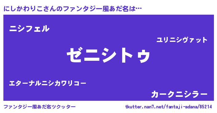 | 意味不明あだ名 | 『自称にしかわりこ』 |