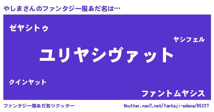 | ヒーロー風カッコイイあだ名 | 『最強戦士ヤシマ』『幻影騎士ヤシ』 |