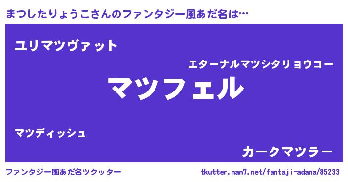 | ヘコむあだ名 | 『まつもー』『つくし』『まつお』 |