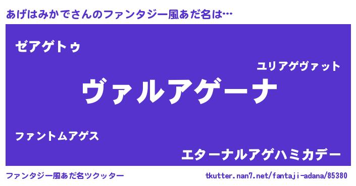 | 意味不明あだ名 | 『住所不定無職あげはみかで(39歳)』 |