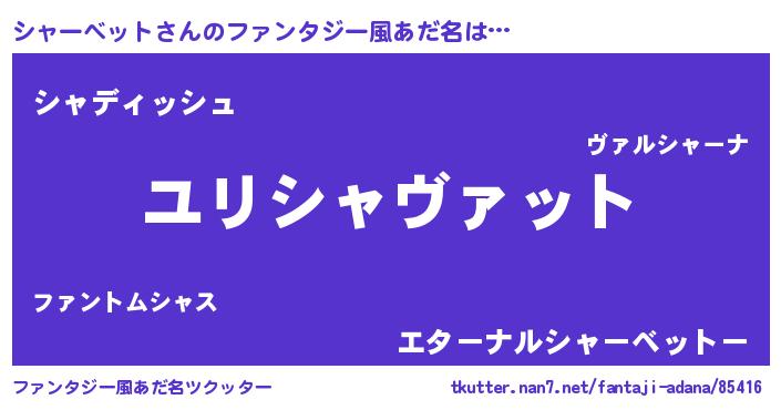 | 女子向けラノベタイトル風あだ名 | 『シャーベットの玉の輿計画!』 |