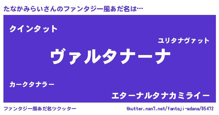 | 女子向けラノベタイトル風あだ名 | 『悪役たなかみらいに転生したようですが、知った事ではありません』 |