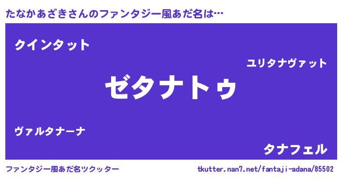 | 意味不明あだ名 | 『自称たなかあざき』 |