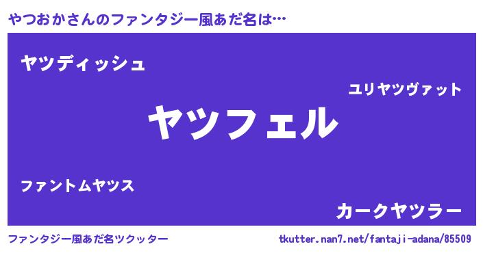 | 意味不明あだ名 | 『ペロリンやつおか』『永久保存やつおか』 |