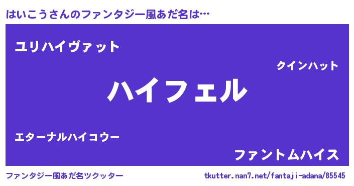 | ヒーロー風カッコイイあだ名 | 『スーパーハイコウ』『天弓騎士ハイ』 |