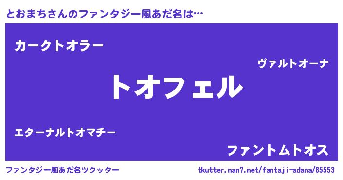 | 自動車の名前っぽいあだ名 | 『ラントオギーニ』『トオティマ』 |