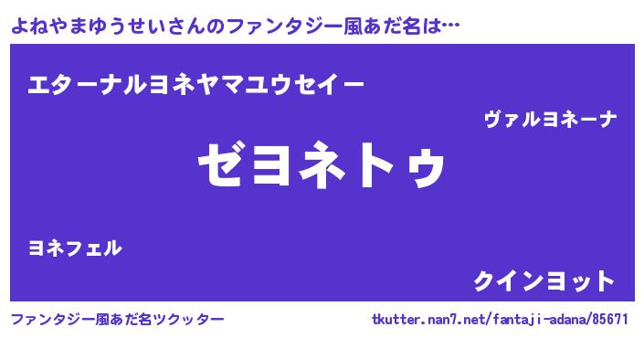 | 男性向けラノベタイトル風あだ名 | 『はたらくよねやまゆうせいさま!』 |