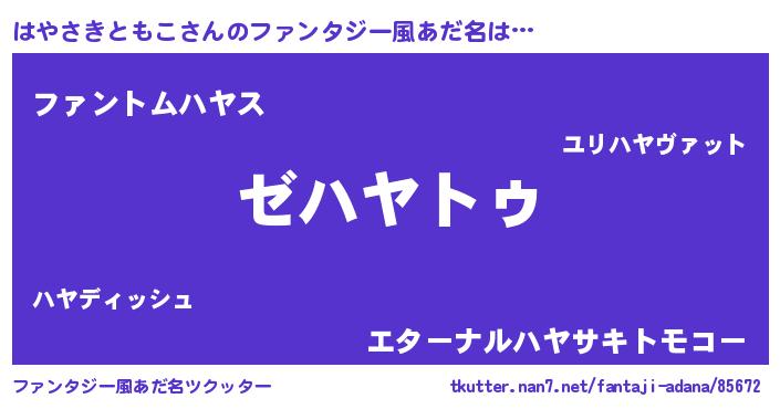 | ポケモン風あだ名 | 『ハヤセウス』『ヒハヤサキトモコ』 |