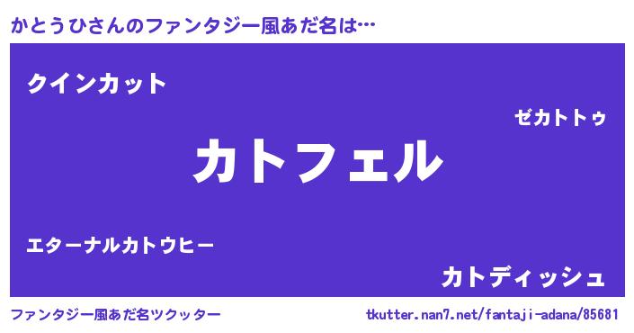 | ヒーロー風カッコイイあだ名 | 『スーパーカトウヒ』『ネオカトウヒ』 |