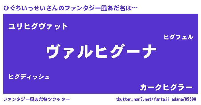 | 男性向けラノベタイトル風あだ名 | 『魔弾の王とひぐちいっせい』 |