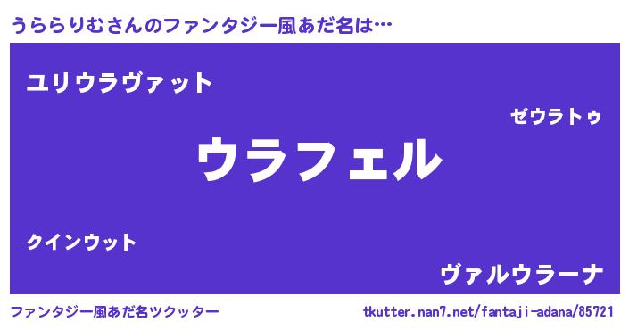 | 意味不明あだ名 | 『ペロリンうららりむ』『自称うららりむ』 |