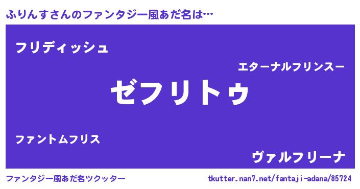 | 女子向けラノベタイトル風あだ名 | 『ふりんすなんてお断りですっ。』 |