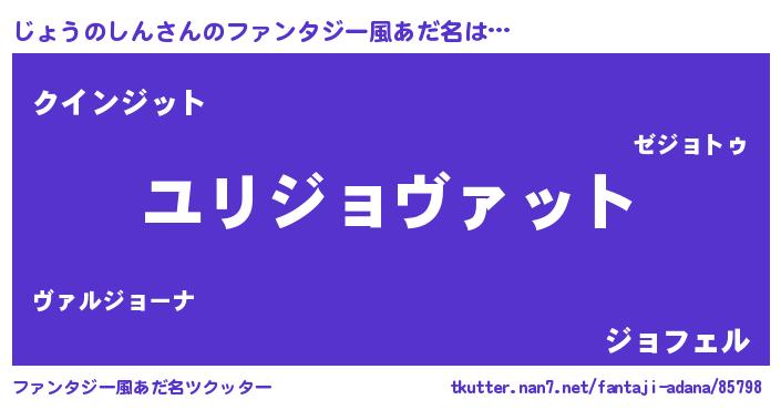 | 男性向けラノベタイトル風あだ名 | 『ジョウノシンスレイヤー』 |