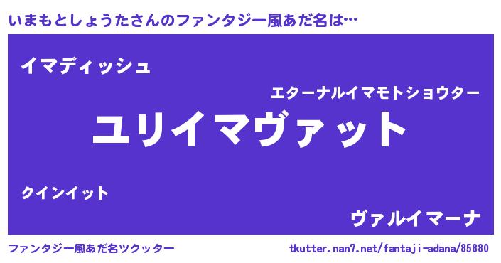 | 男性向けラノベタイトル風あだ名 | 『イマモトショウタスレイヤー』 |