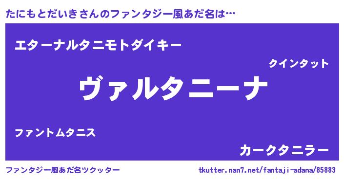 | ヒーロー風カッコイイあだ名 | 『仮面タニダー』『暗黒騎士タニ』 |