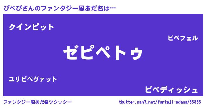 | 男性向けラノベタイトル風あだ名 | 『Re:ぴぺぴから始める異世界生活』 |