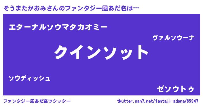 | 女子向けラノベタイトル風あだ名 | 『そうまたかおみ夫妻のなれそめ』 |