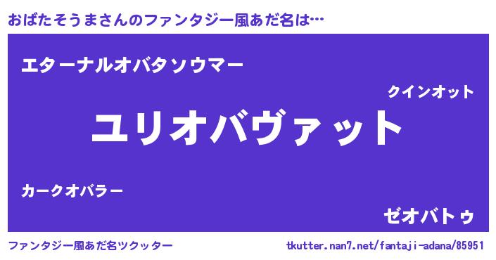 | 男性向けラノベタイトル風あだ名 | 『転生したらおばたそうまだった件』 |