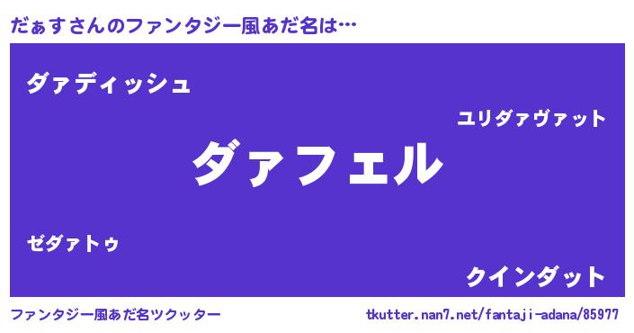 | 自動車の名前っぽいあだ名 | 『ダァティマ』『デミダ』『フィッダ』 |