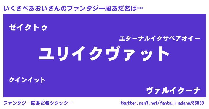 | 男性向けラノベタイトル風あだ名 | 『イクサベアオイスレイヤー』 |
